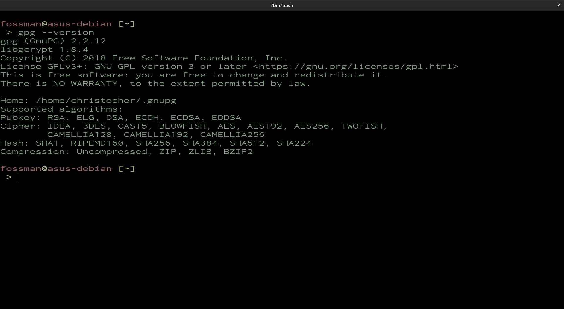 If you would like to use a different algorithm, use the --cipher-algo option. In this example the TWOFISH algorithm will be used. After the file is encrypted, the .gpg extension will be added to the end of the file.