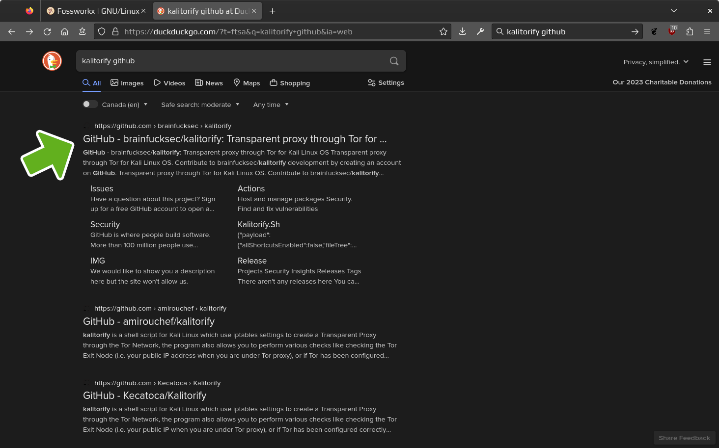In this example the kalitorify package will be installed