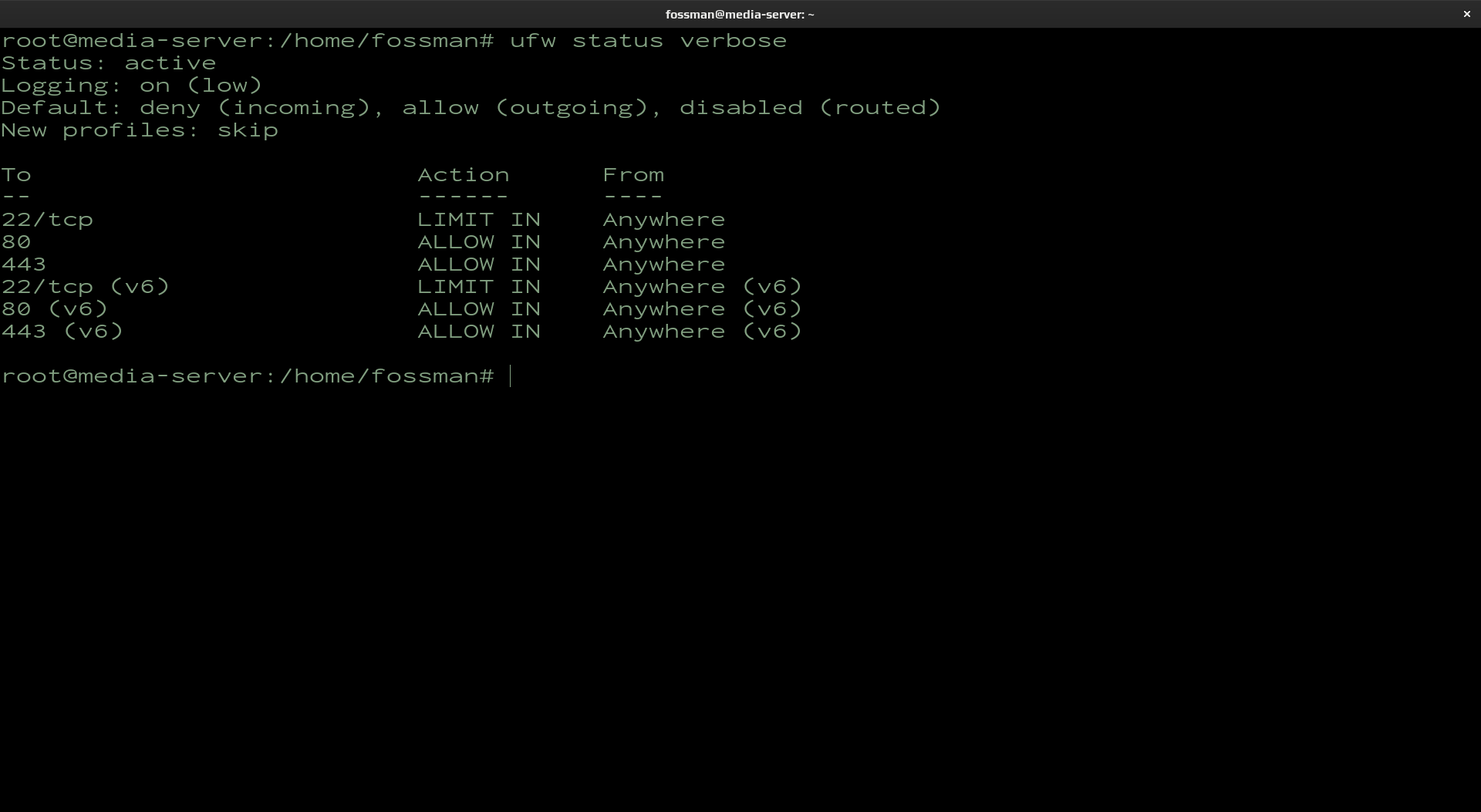 Before installing the web server, there are a few prerequisites that will need to be satisfied. These include creating a non-root user, allowing ports 80 (HTTP) and 443 (HTTPS) in your firewall and the configuration of the router to forward these ports, which will allow clients outside of your network access to the application being served. These steps are outlined below.