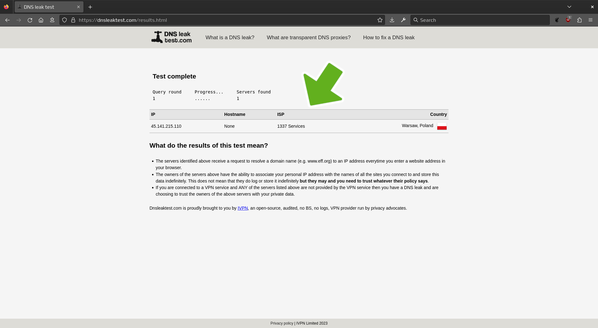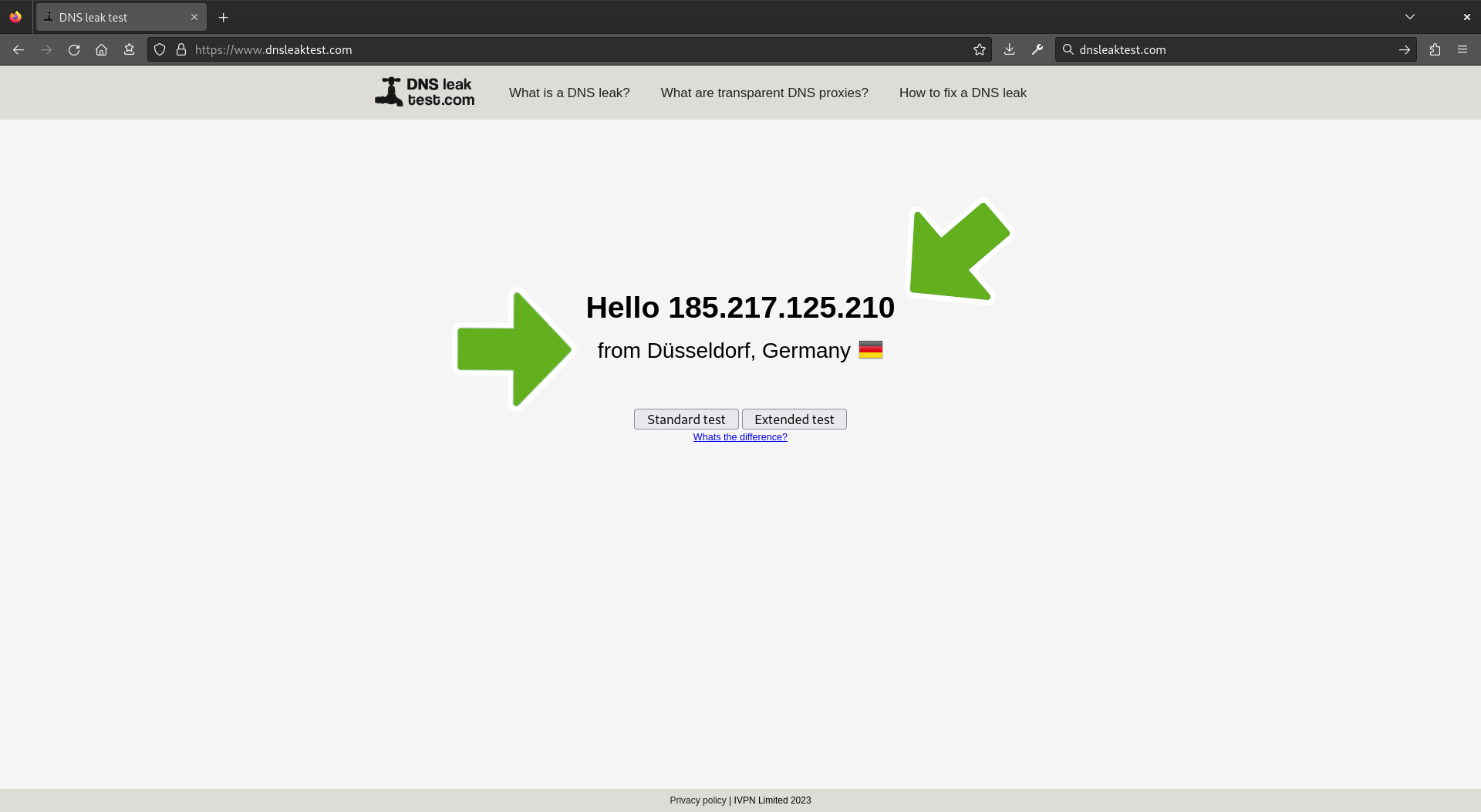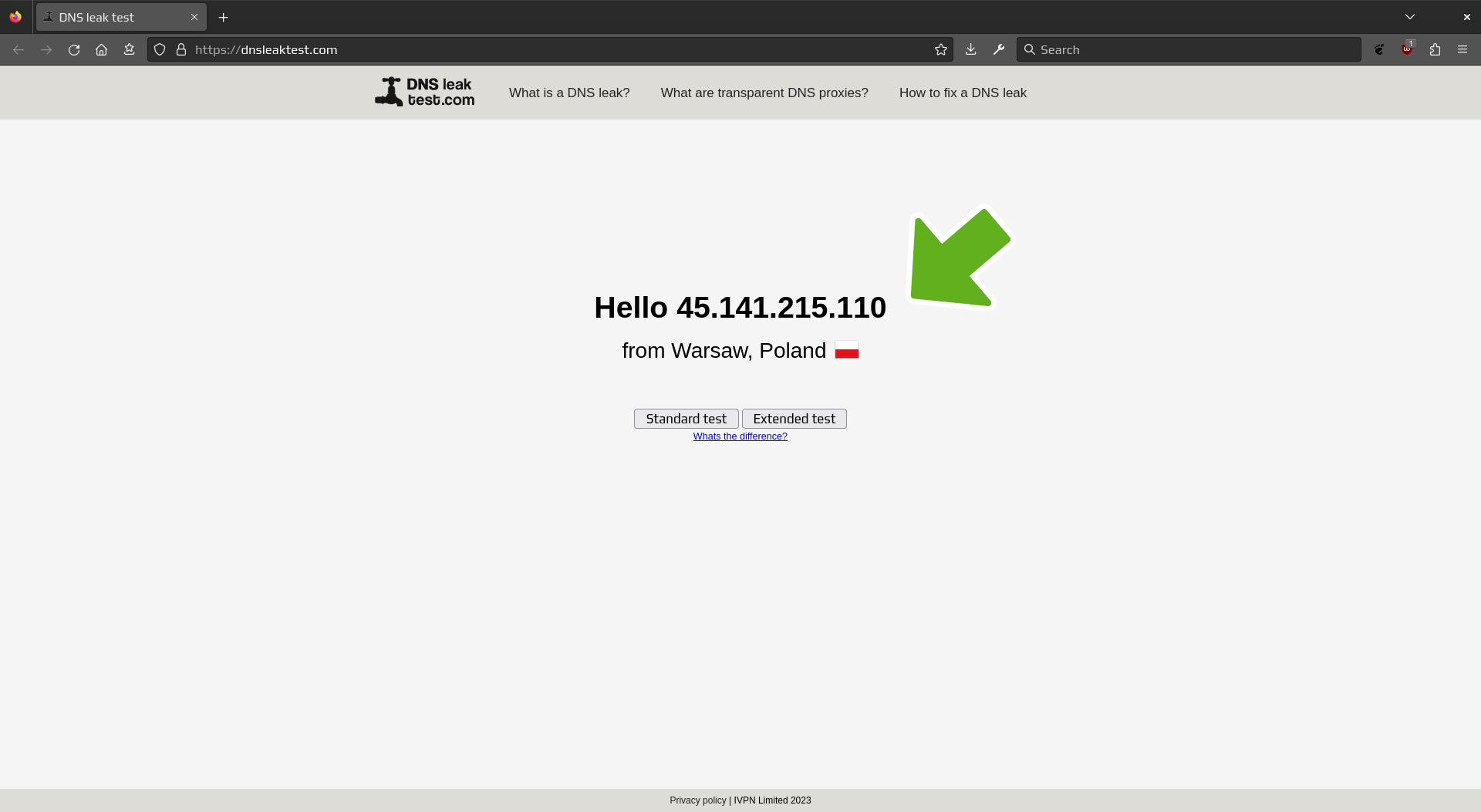Then, click on Standard test to verify there was no DNS leak.