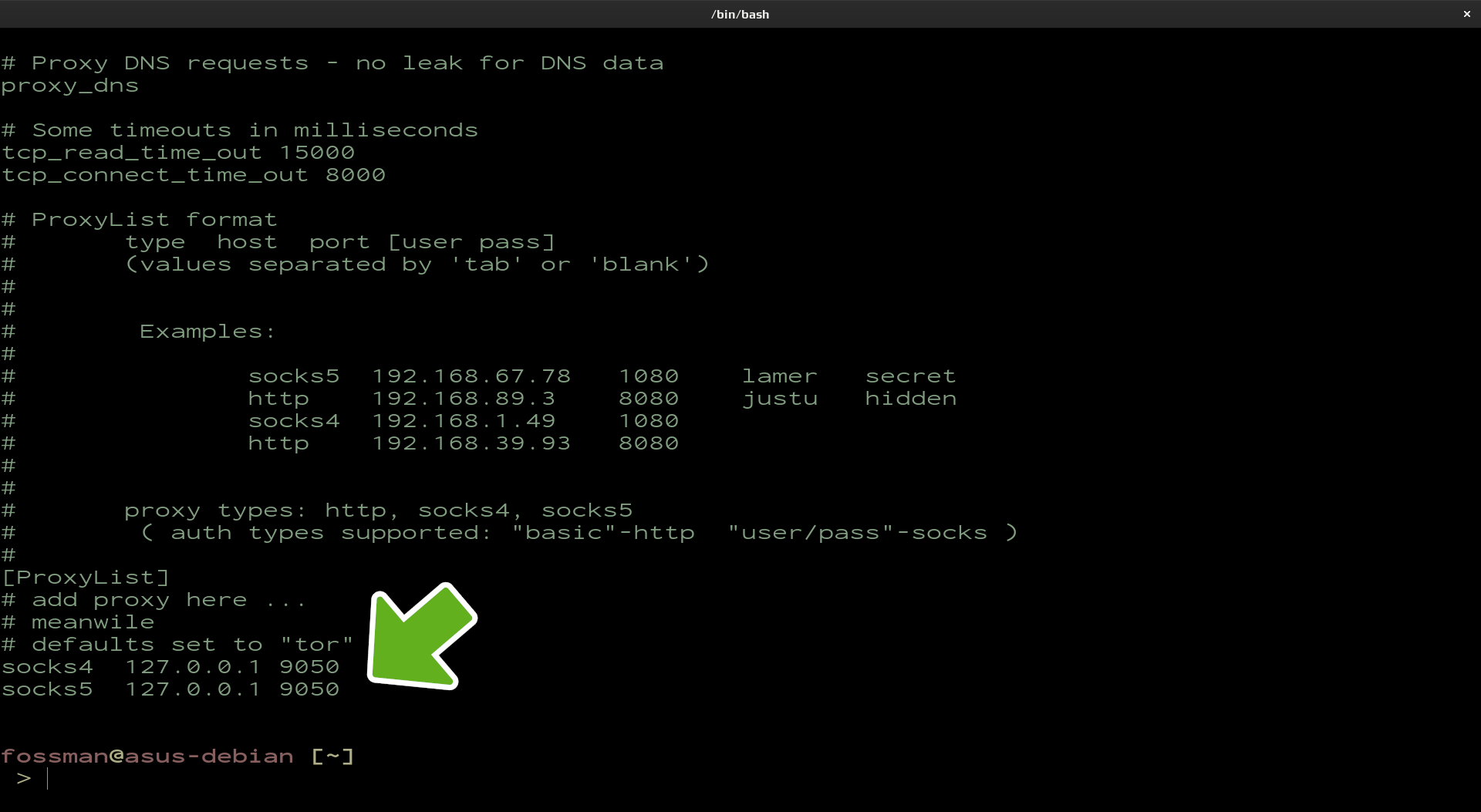 Before proxychains can be used, the configuration will need to be modified. Use the following command to open the file and make the necessary changes.