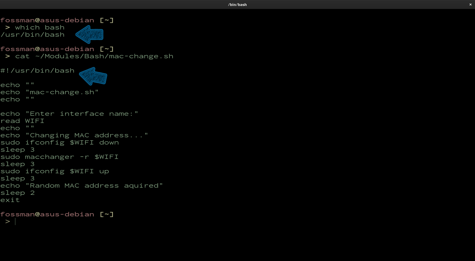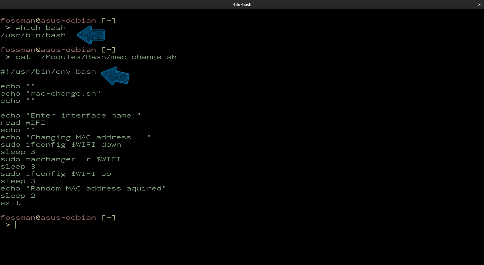 Used to Specify which interpreter will run the script. This will be the very 1st line. This line will start with a #! and be followed by the path to the bash interpreter. Doing this will ensure the correct interpreter is used to execute the script. Without this line, the script will be teated as just a text file. However, the Bash interpreter is not always installed in the same location. In this case the shebang can also point to the Bash environment variable, which will then point to the interpreter. Examples shown below.